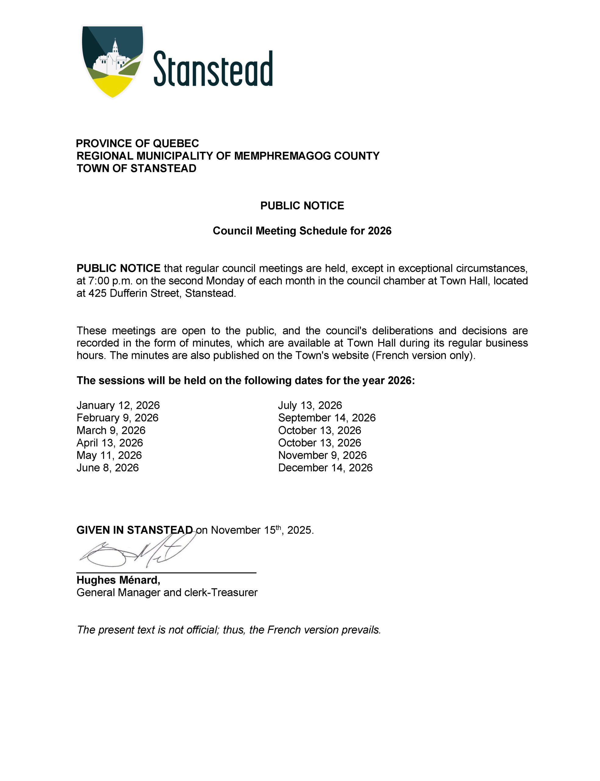 Thank you for visiting our website. The Town of Stanstead is proud to welcome you.
